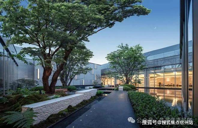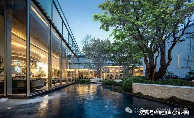 向外连接的是下沉庭院的“古树浮桥”,水镜、古树、桥廊与围合立面共同形成一个“可停留”的自然剧场——不是装饰,而是鼓励你去使用的第三空间。
