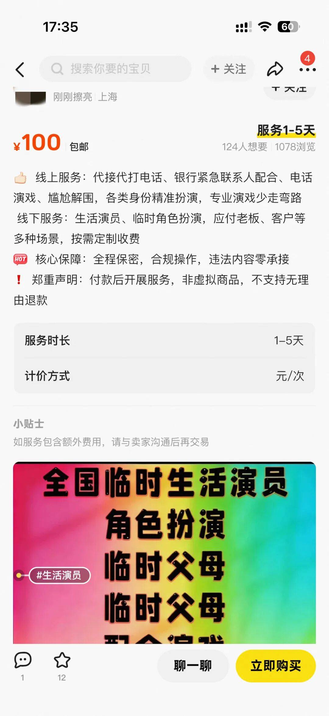 其中一个商家表示,在各地都可找到接单演员,根据地区不同、日期长短、交通是否便利等报价也不同,除夕当日为1500元一天。对此,律师也作出提醒,这样的交易存在风险,可能出现人身安全问题,此外也可能引发经济纠纷。