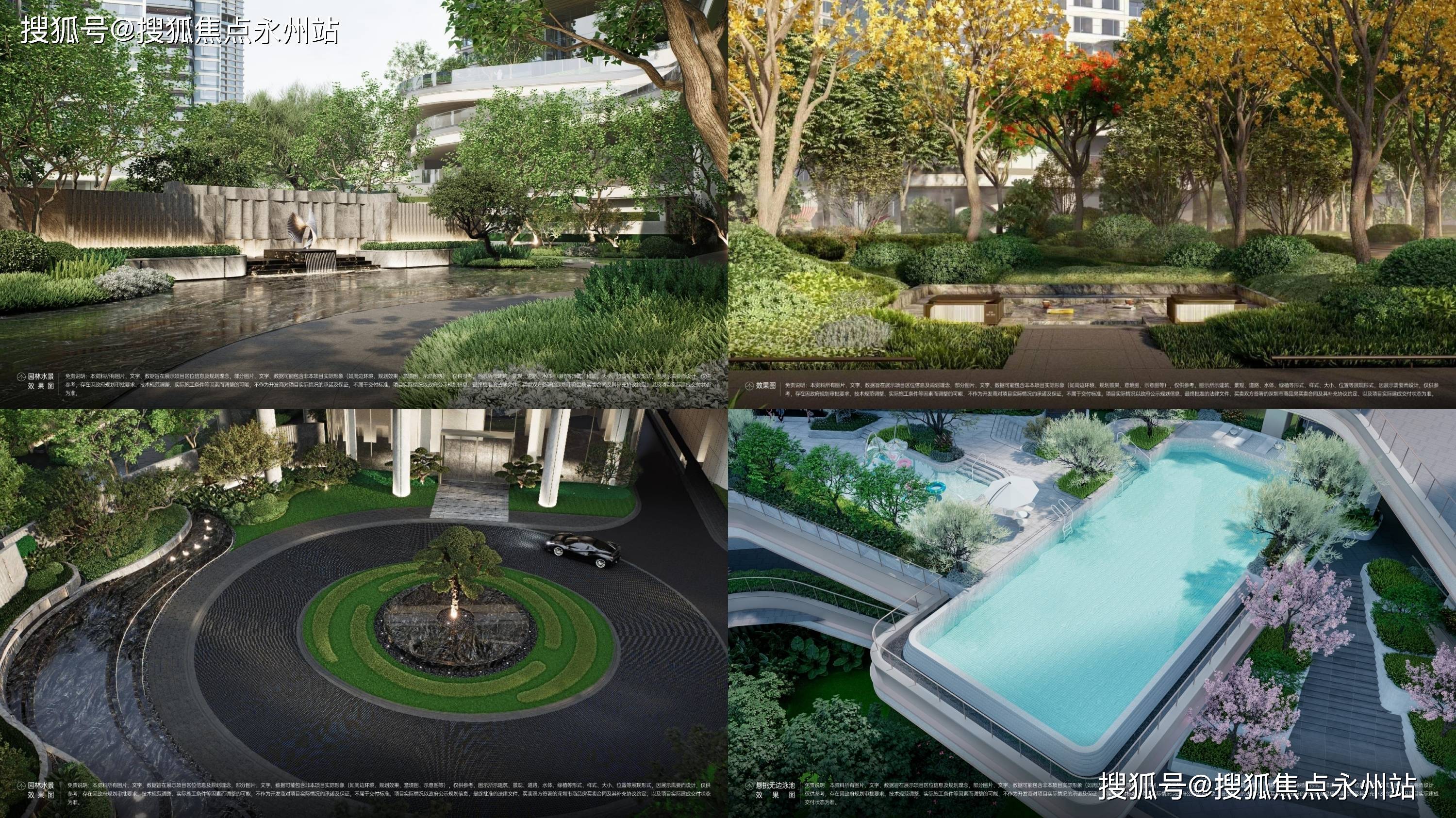 景观布局与特色:由 DDON 笛东与梁黄顾事务所联合打造“都市绿洲”主题园林,绿化率超 30%,包含中央景观轴、下沉式庭院、架空层泛会所等多层次空间。采用台阶式园林设计,通过跌水景墙、艺术雕塑与四季植被,营造一步一景的诗意体验,蜿蜒的休闲步道贯穿其中,串联起无边际泳池、景观会客厅等功能区。