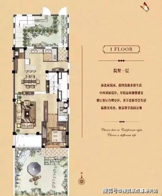 项目力邀国际顶尖团队打造出纯正的南加州风情建筑,暖黄色的外墙、精致的花架矮墙、红色的筒瓦,仿佛来自海岛小镇的一抹温暖阳光,让住户时刻感受度假般的生活环境。