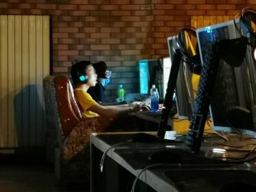 刚一走进网吧内,还没适应屋内昏暗的光线,记者耳边就传来一阵鼠标和键盘的快速敲击声。网吧一层全黑着灯,除了前台以外空无一人,但抬头望去,二层却灯火通明,从传来的键盘声和交流声判断,楼上的人数不少。